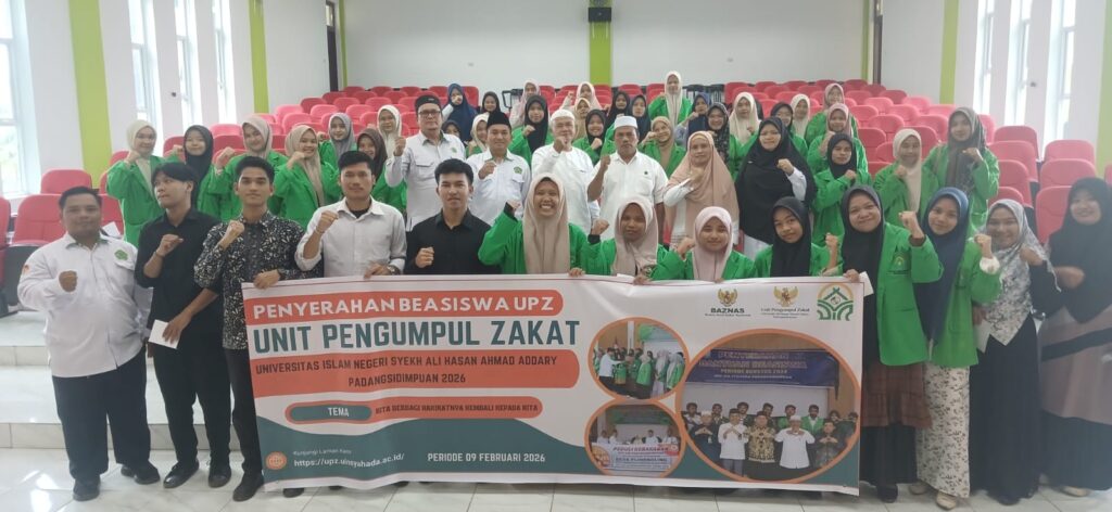 Unit Pengumpul Zakat (UPZ) UIN Syahada Padangsidimpuan telah menyerahkan bantuan beasiswa kepada mahasiswa terpilih pada Senin, 9 Februari 2026. Acara ini berlangsung di Aula Gedung Terpadu UIN Syahada Padangsidimpuan mulai pukul 08.00 WIB hingga selesai.